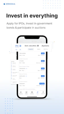 Share market app with complete NSE stock, BSE stock and commodities access. Investors can invest, trade and manage their demat account. Whether you're into intraday trading, long-term investing, or futures options trading, Zerodha provides tools for stock market participation. Start your investment journey with Zerodha for online trading and investing.